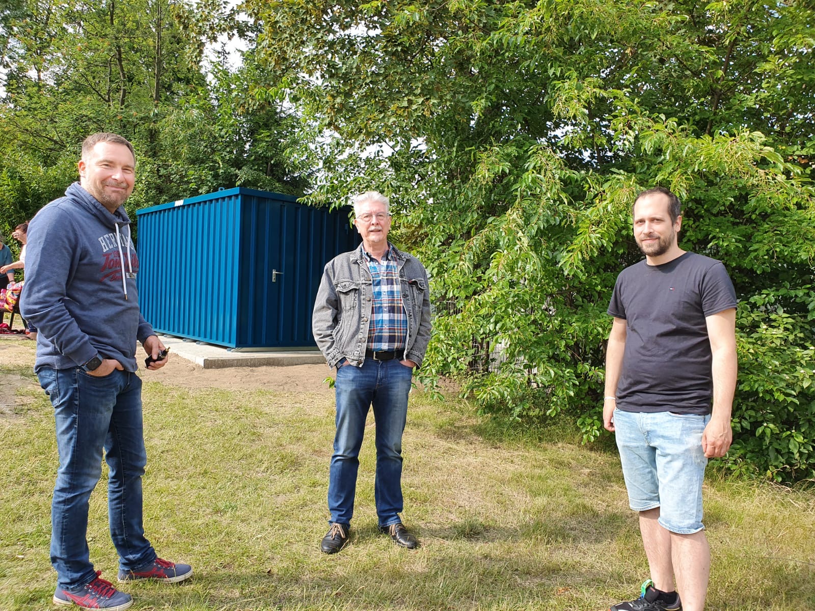 In der Facebook-Gruppe „Essen-Margarethenhöhe“ haben wir vor gut zwei Wochen gelesen, dass der neue Spielplatz „Ozeanarena“ auf der Margarethenhöhe noch dringend Spielmaterial für die Kinder benötigt. Die beiden Spielplatzpatinnen, Janine Nennhuber-Schmitz und Jasmin Stracke haben sich sehr darum bemüht, dass dort nicht nur zwei Bänke und ausreichend Mülleimer aufgestellt wurden - nein, durch Ihr großartiges Engagement konnten die beiden auch erreichen, dass dort ein Container für Spielmaterial aufgestellt wird. Nachdem vor einigen Wochen bereits ein Fundament gelegt wurde ist heute der Container aufgestellt worden. Zusammen mit den NaturFreunden Essen-Westhaben wir durch Spenden unserer Mitglieder*innen heute direkt mal drei neue Bobby-Cars im „Ozeanblauen“-Container einparken können.